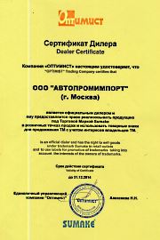 Компания «АвтоПромИмпорт» имеет множество сертификатов (сертификат официального дистрибьютора: Сибек, Trommelberg, NORDBERG AUTOMOTIVE, KING TONY, KraftWell, Brain Bee, HAWEKA, МАСТАК, JOHN BEAN, Autostapel, Portotecnica, Hunter, ATIS, Apac, ЧЗАО, «АЕ&Т», Hofmann, TECO, OMA Garage Equipment, "Станкоимпорт", "Hans", "REMEZA", "FIAC", "GAV", "SUMAKE", "ProfHelper" и др.), свидетельствующих о высоком уровне доверия производителей.